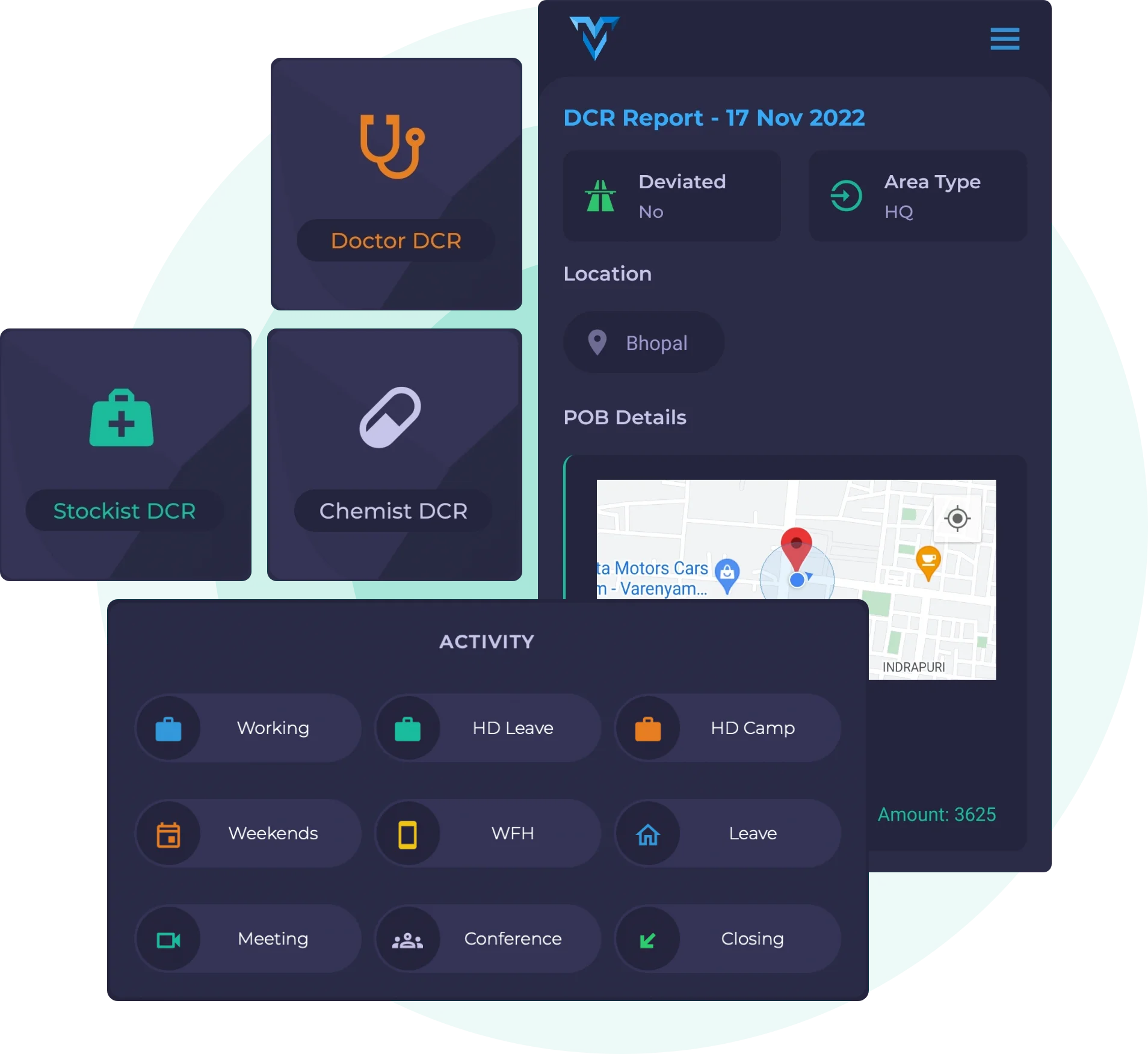 Track your MR team with our Pharma Sales Force Automation Software, recognized as the best pharma software, to monitor tours, doctor visits, expenses, and reports in real time.